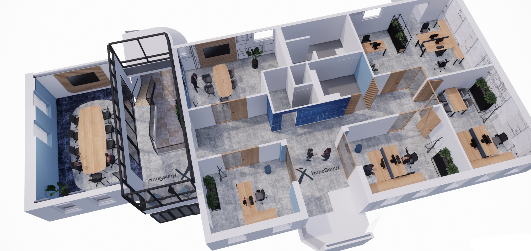 Omdat er veel samengewerkt wordt met anderen, kunnen we eigenlijk alles wel aan. Afhankelijk van soort project, werken we met bouwkundig ingenieurs, (interieur)architecten, projectinrichters, interieurbouwers en aannemers, fotografen, lichtleveranciers, etc.