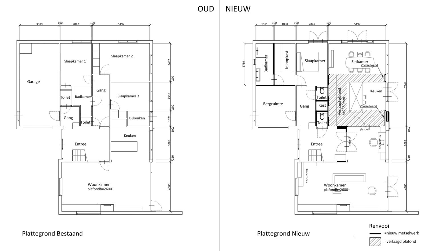 Ook hebben we 2D tekeningen gemaakt van de oude en nieuwe indeling van plattegrond en gevelaanzichten. Hiermee kon de aannemer een offerte opstellen.